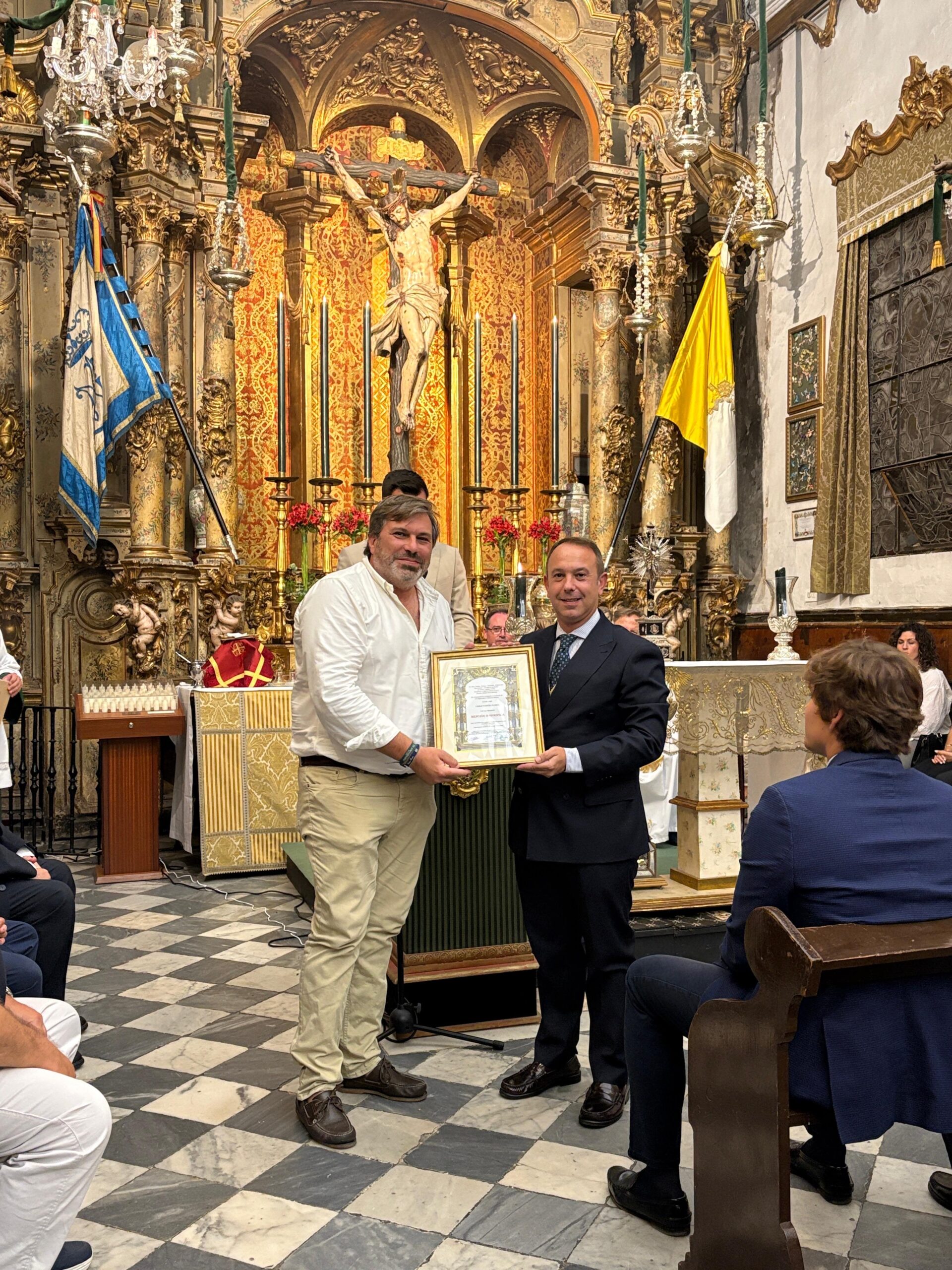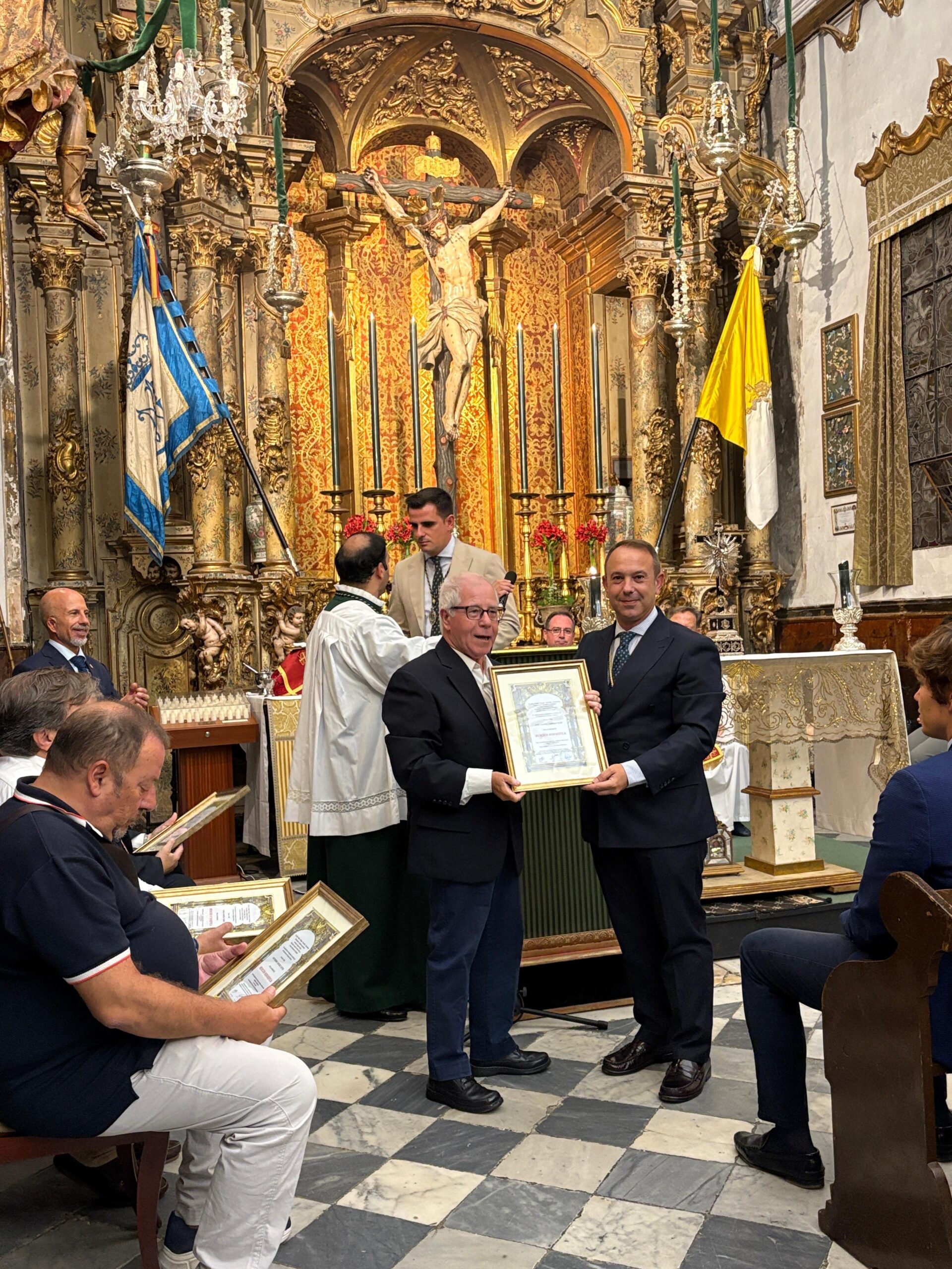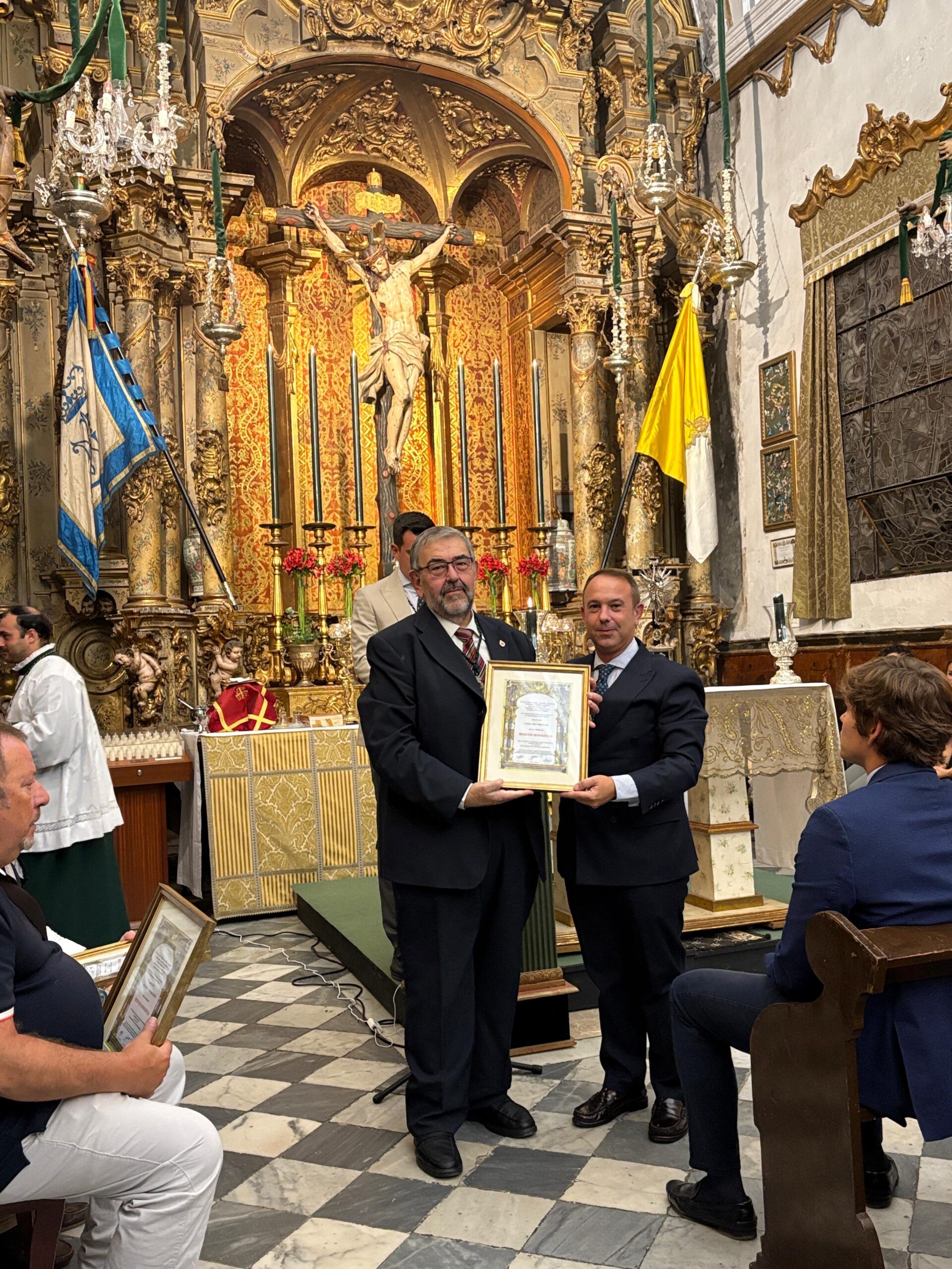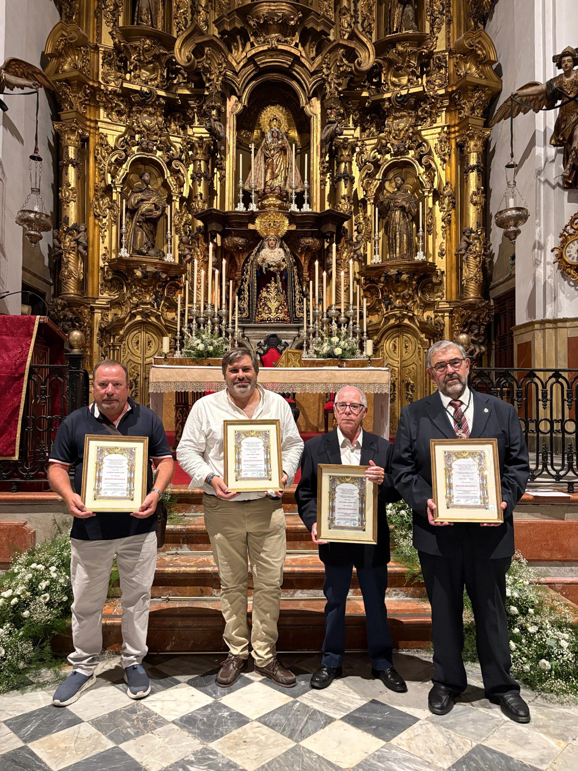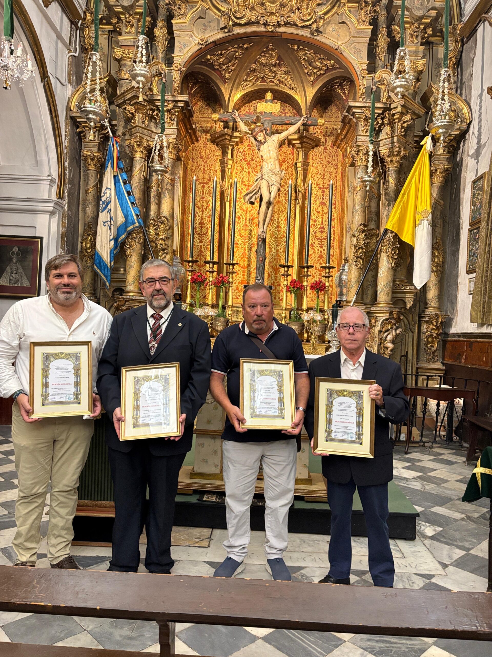 Resaltar la entrega a 5 hermanos por parte del Hermano Mayor de la mención honorífica de la Hermandad por el 50 aniversario de hermanos.