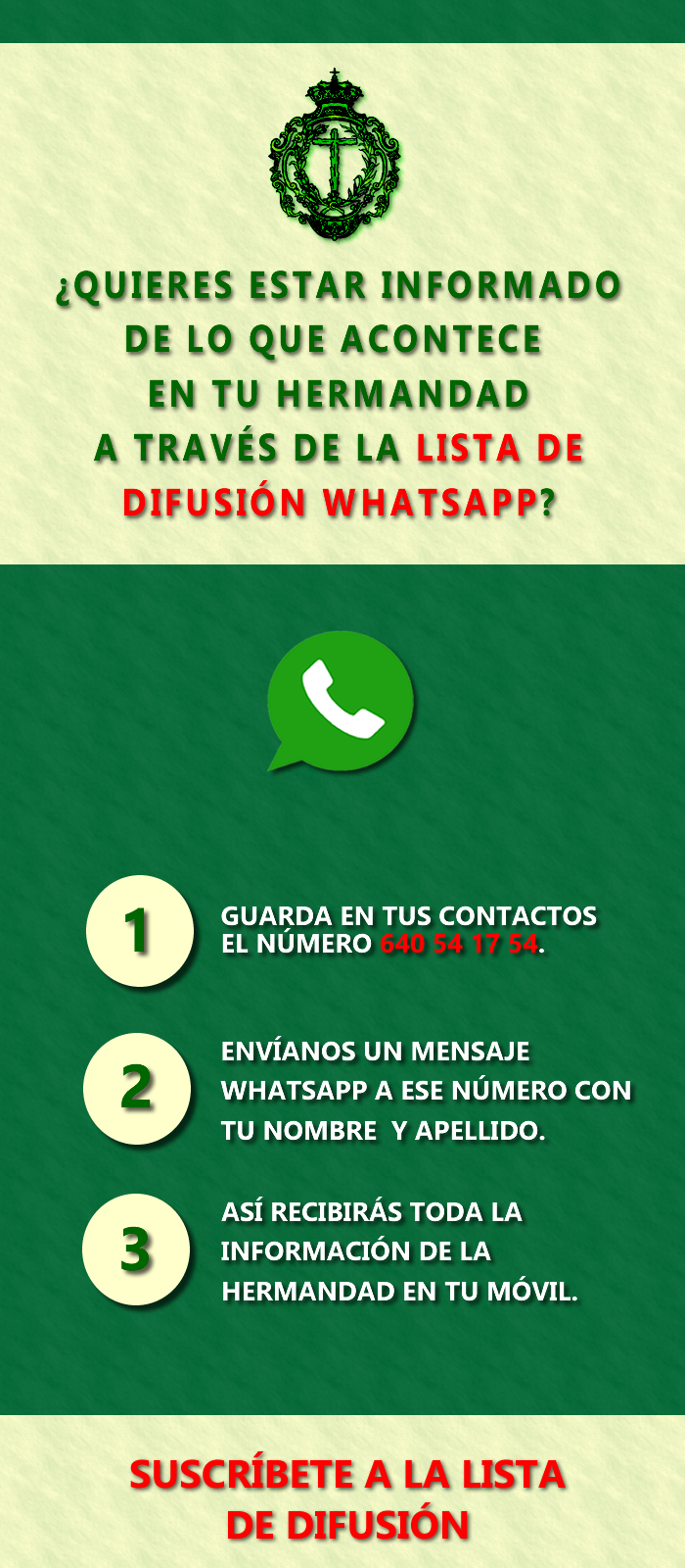 Te recordamos que nuestra Hermandad dispone de Lista de Difusión de Información a través de la Aplicación Whatsapp para dispositivos móviles.