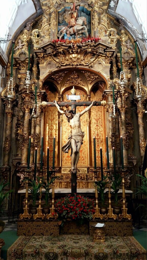 La mañana se inició con la apertura de la Iglesia de San Francisco, donde tenía lugar el Solemne Besapie del Santísimo Cristo de la Vera+Cruz ante Su altar.