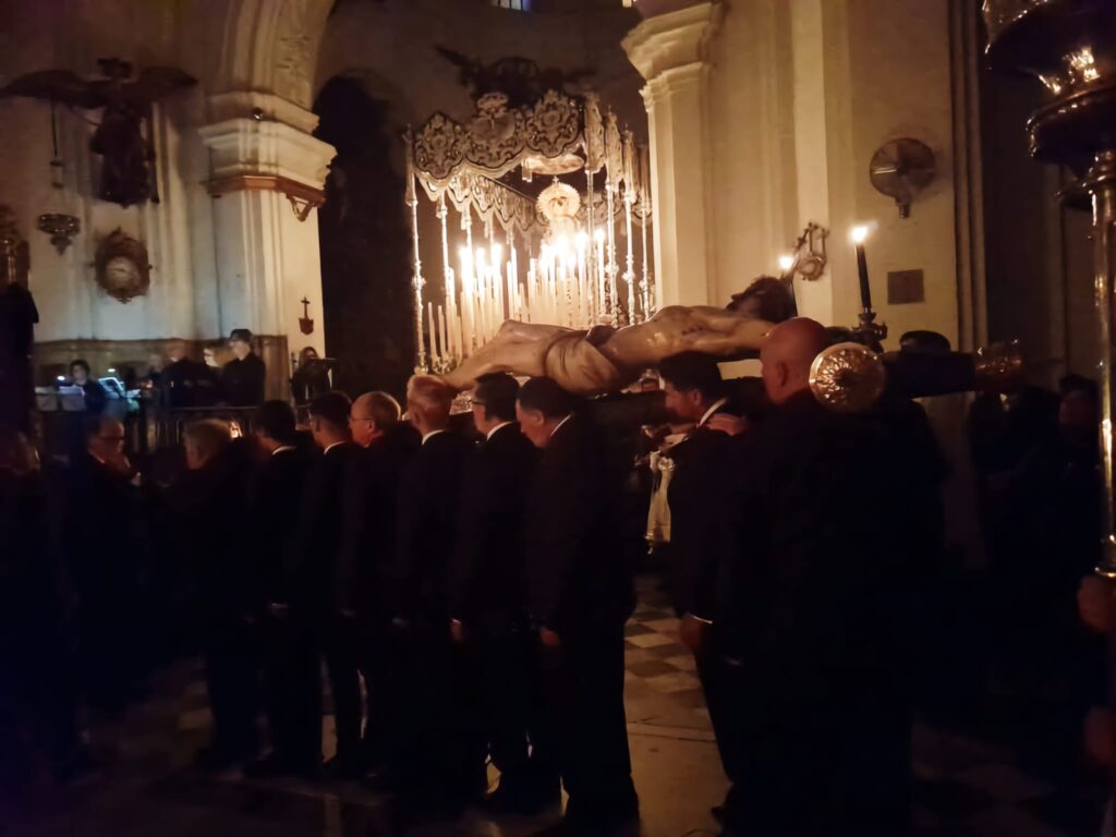 Y a la caída de la noche, la Iglesia de San Francisco se envolvió una vez más en el halo de misterio, silencio y respeto por la Muerte de Nuestro Señor Jesucristo, tal y como acontece cada Domingo de Pasión durante el traslado del Santísimo Cristo de la Vera+Cruz a Su paso procesional.