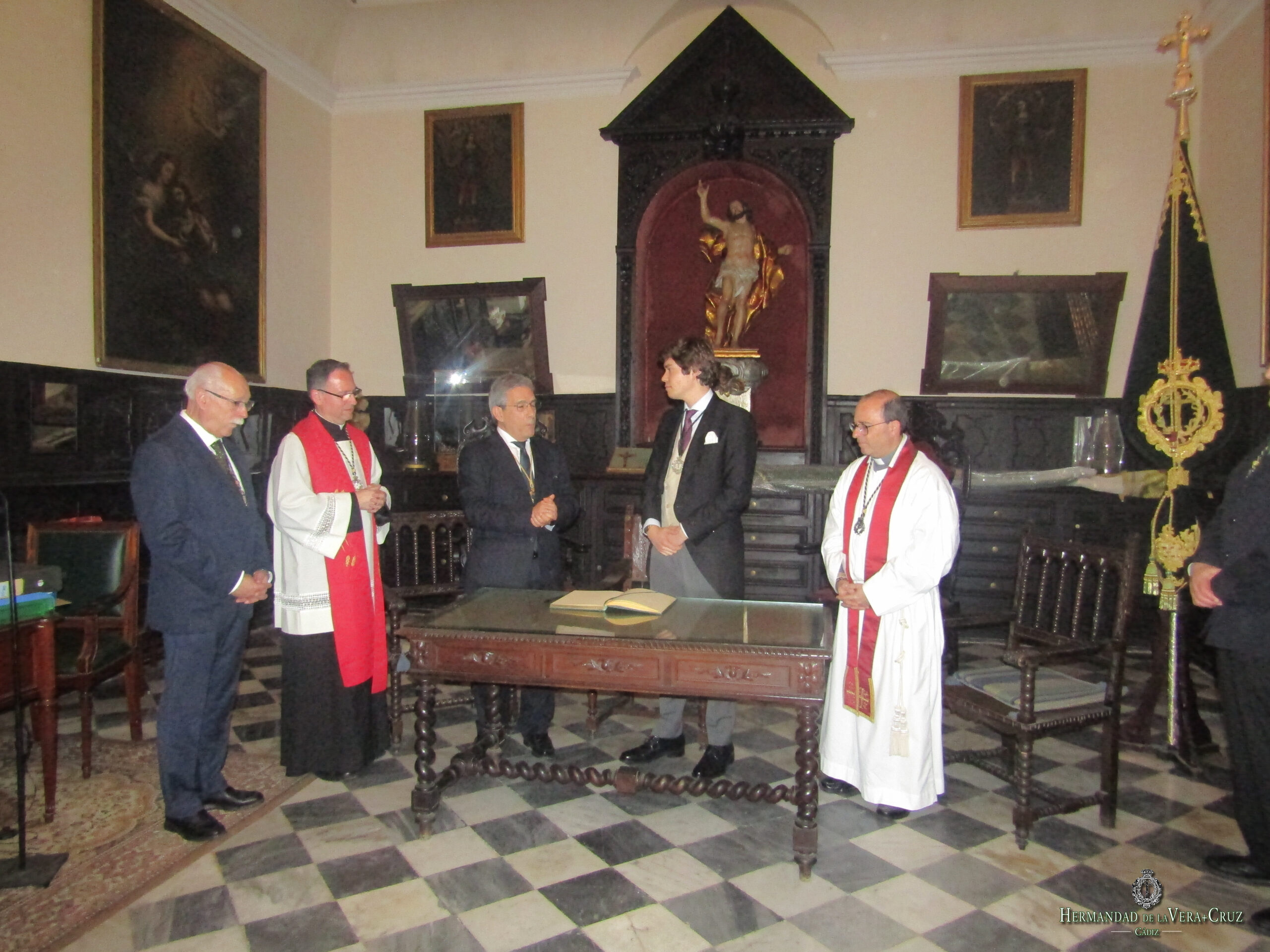 A continuación plasmaron su firma el Director Espiritual NHD. Rubén Virués Gómez, el representante del Consejo de Hermandades y Cofradías D. Francisco Muriel Capilla así como Dña. Arantxa Gómez Álvarez y el Rvdo. Padre Rafael Iglesias Calvo, Director Espiritual de la Hermandad de Nuestro Padre Jesús Caído.
