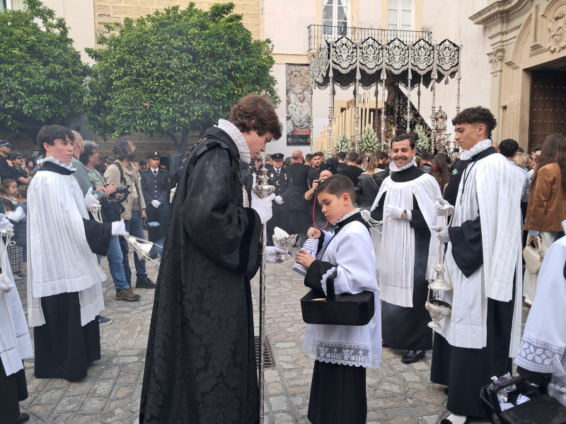 No podemos dejar de hacer mención y enmarcar el comportamiento ejemplar de todos nuestros Hermanos en todo momento, así como del acompañamiento musical de los pasos, destacando de manera especial la entrega de los cargadores y de sus capataces quienes, a pesar de las inclemencias meteorológicas sufridas por el cortejo a la vuelta de la Estación de Penitencia en la S.A.I. Catedral dejaron patente su alta preparación, sobre todo en los instantes más difíciles ocasionados por los aguaceros sobrevenidos durante el tránsito en calles aledañas a nuestra sede canónica.