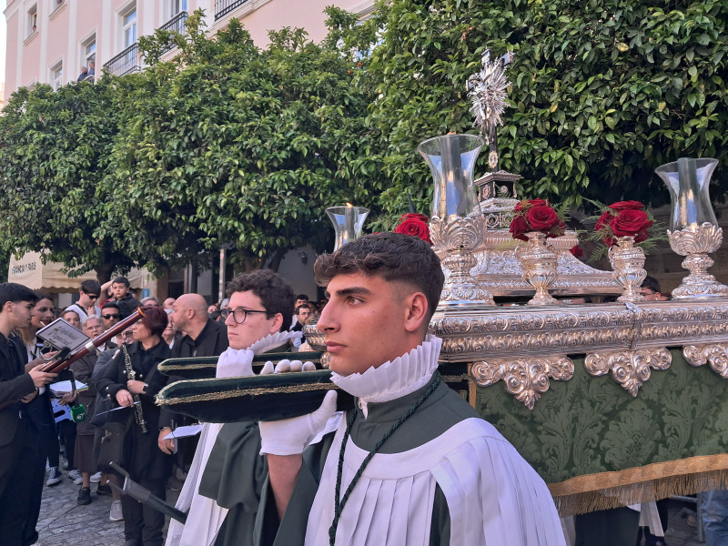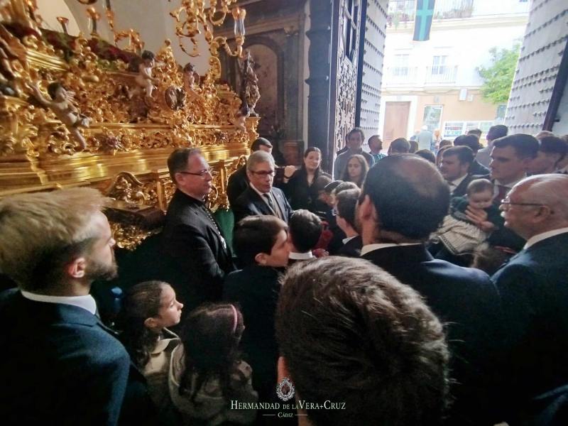La mañana transcurrió con las idas y venidas de gran número de cofrades, destacando asimismo las visitas de muchos turistas extranjeros llegados en los cruceros que se encontraban atracados en el Muelle de la ciudad y que en ocasiones mostraron su curiosidad por los pasos y nuestras tradiciones.