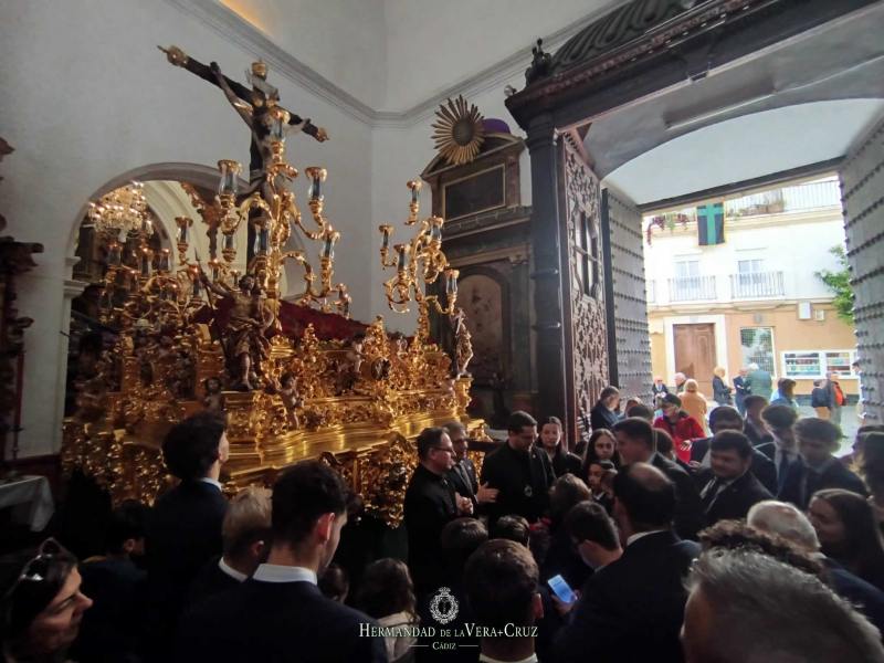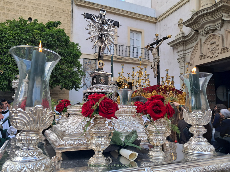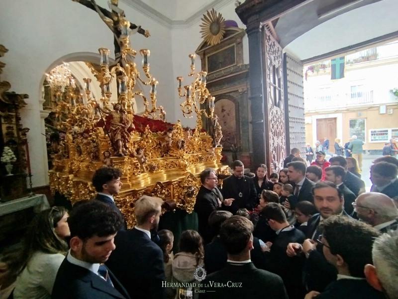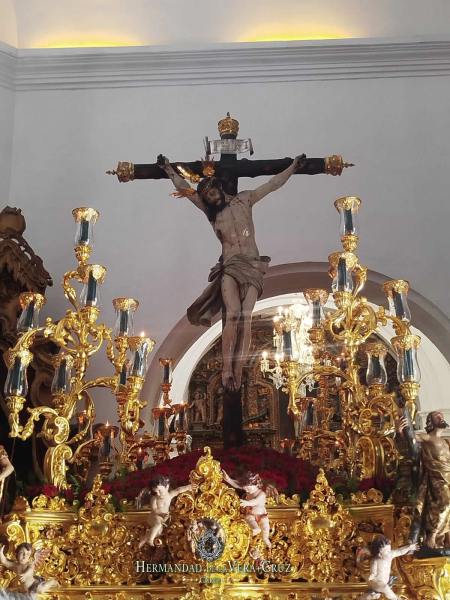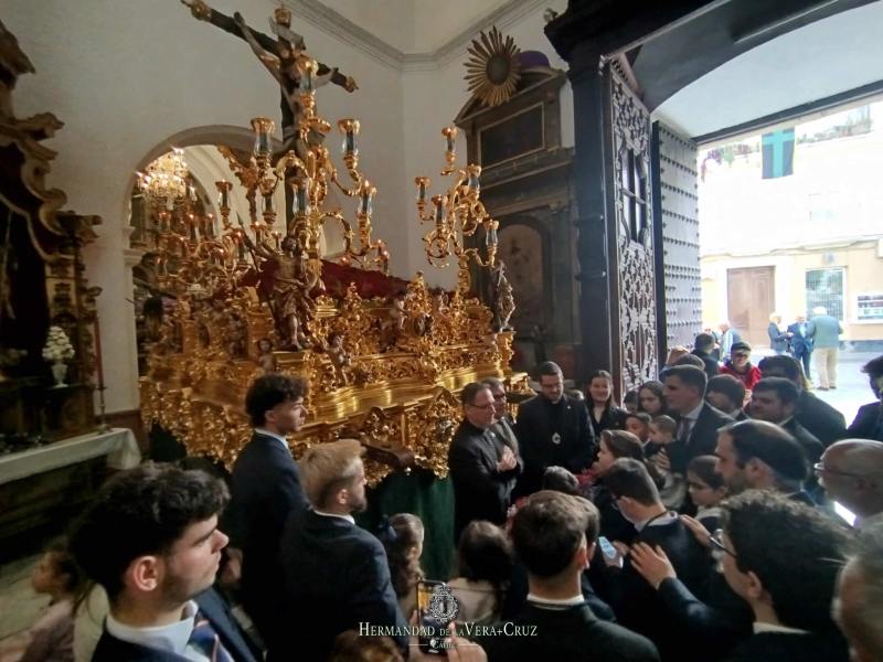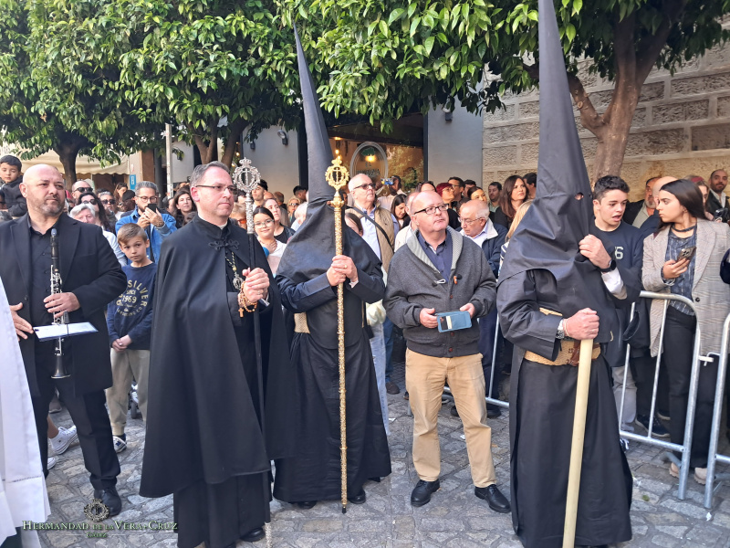 Ya por la tarde, el inicio de la Estación de Penitencia registró para la posteridad el momento de la presentación de la pieza de capilla musical «En los brazos del Padre», obra del músico sevillano Francisco del Toro Zamora y dedicada a quien fuera integrante de la cuadrilla del Santísimo Cristo de la Vera+Cruz D. Alejandro Cortés Molina (QEPD). La interpretación de la pieza tuvo lugar una vez situado el paso de nuestro Titular en el exterior del templo y estuvo a cargo de la capilla musical Lignum Crucis.