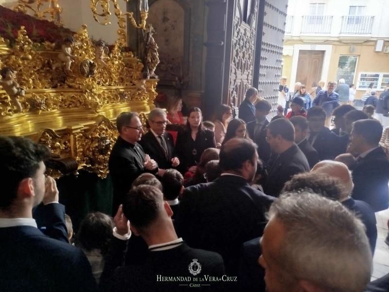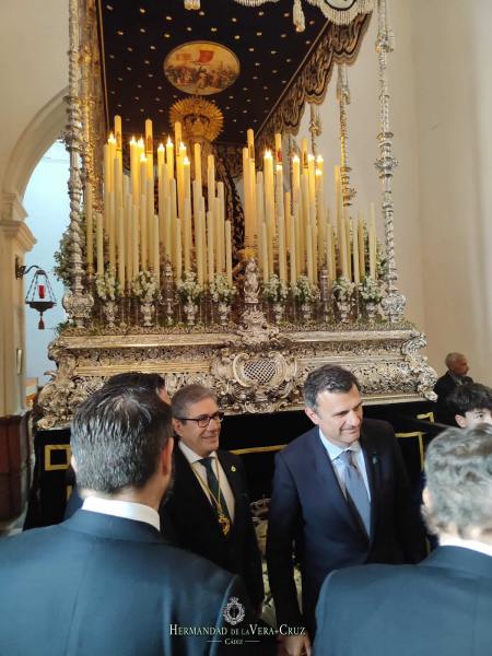 En la Presidencia del Santísimo Cristo de la Vera+Cruz junto al Hermano Mayor presidió NH y Director Espiritual Rubén Virués Gómez, mientras que en la Presidencia del paso de Nuestra Señora de la Soledad lo hacía el Padre Daniel María Herrera Pérez, O.S.A., quien llevó a cabo las predicaciones durante el Solemne Quinario cuaresmal de la Hermandad.