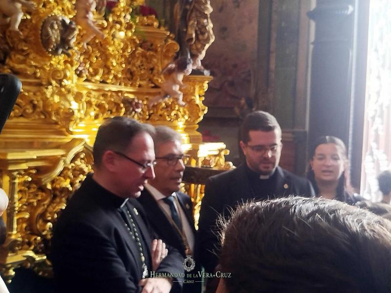 Estuvieron presentes los Padres Misioneros Identes en el Convento de San Francisco, la comunidad de Hermanas Terciarias del Rebaño de María en Cádiz, no faltando a la cita representantes del Excelentísimo Ayuntamiento de Cádiz, encabezados por su primer edil D. Bruno García, así como de los grupos socialista, Vox y Ahora Cádiz. El Consejo de Hermandades y Cofradías local estuvo representado por su Presidente NHD. Juan Carlos Jurado Barroso.