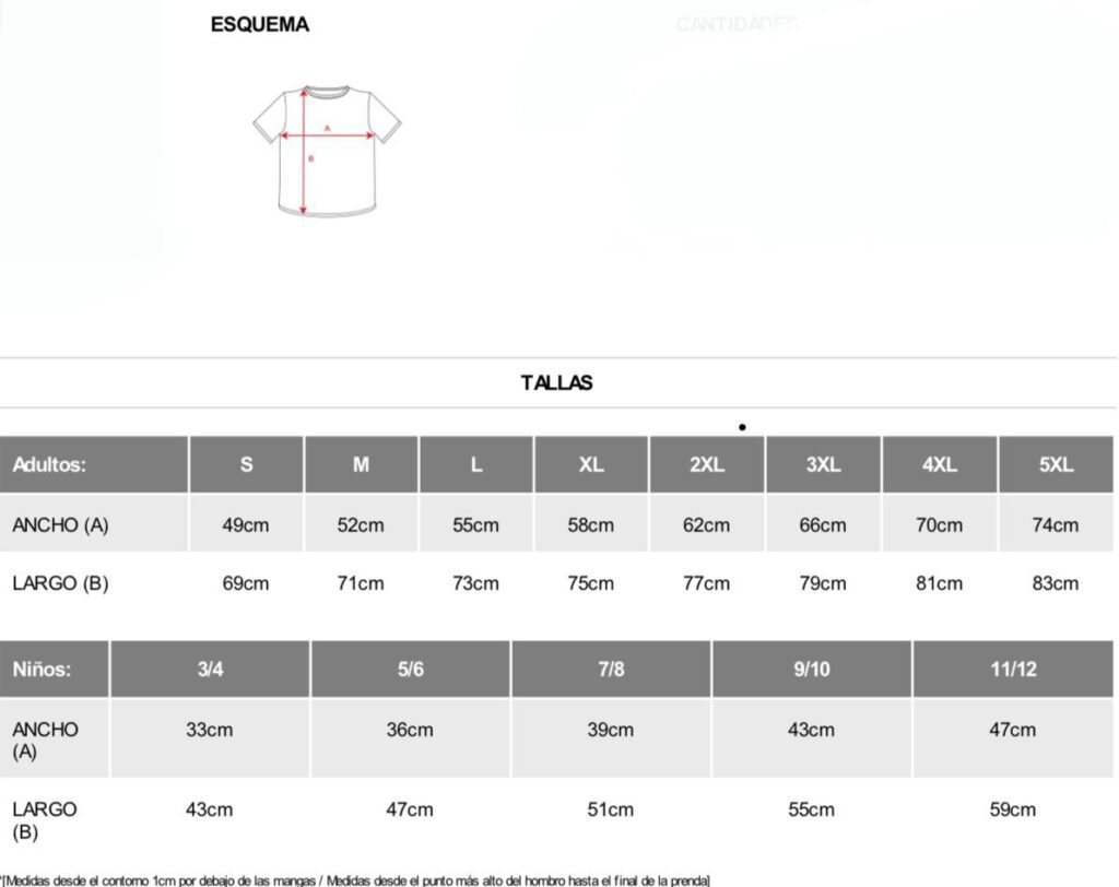 A continuación te indicamos el diseño de la prendas así como la tabla de tallas para realizar el encargo.