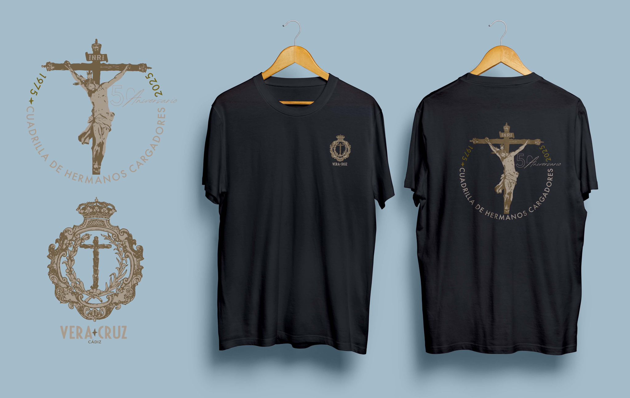 La cuadrilla de Hermanos Cargadores del paso del Santísimo Cristo de la Vera+Cruz ha encargado la realización de una camiseta conmemorativa con motivo de la celebración de la efemérides del 50º aniversario de su constitución.