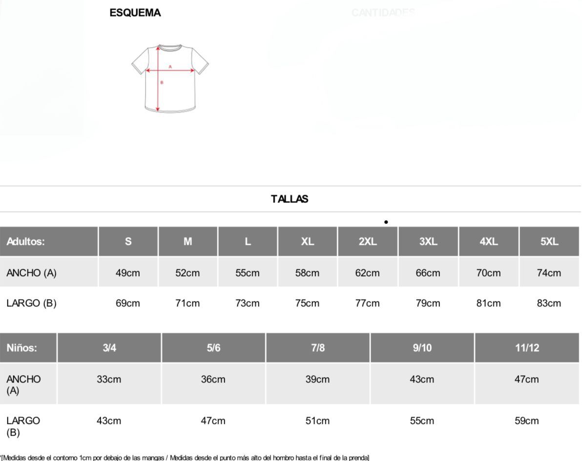 A continuación te indicamos el diseño de la prendas así como la tabla de tallas para realizar el encargo.