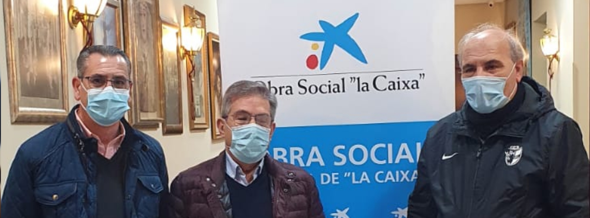 Recibidos en su sede de la calle Cobos por su Presidente, NHD Juan Carlos Jurado Barroso, se nos hizo entrega de un lote de 15 bolsas de alimentos de las donadas por la Obra Social de La Caixa, para colaborar en nuestra Campaña Solidaria.