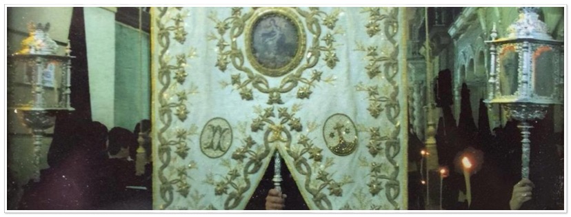 Portado por un hermano de nuestra Cofradía, y acompañado de faroles, se situó en su lugar correspondiente, esto es, tras el paso del Santísimo Cristo y abriendo las Secciones de luz que anteceden el paso de palio de Nuestra Señora de la Soledad.
