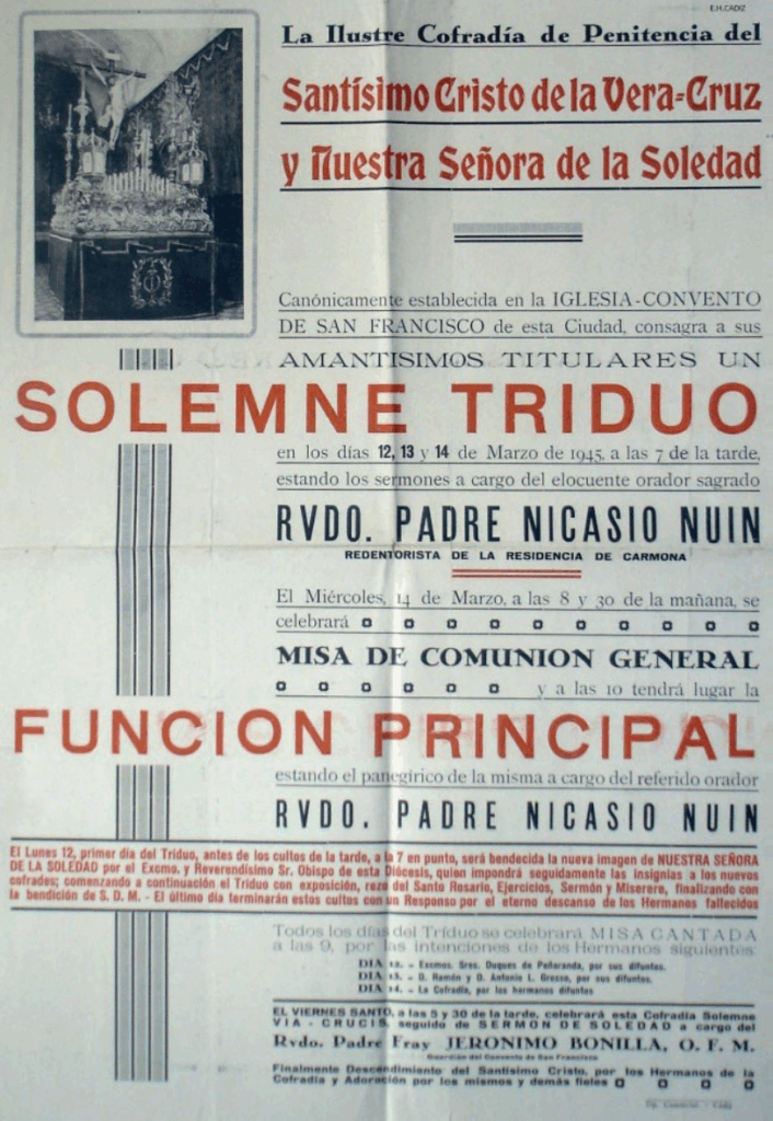 El cartel del triduo de dicho año recoge la citada composición de Stabat Mater.