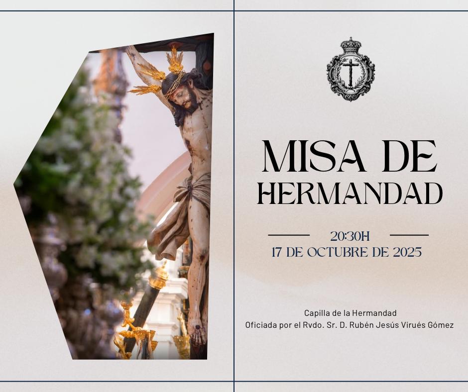 Este viernes 17 de Octubre, tercero del mes, se celebrará culto mensual en honor y gloria de nuestros Titulares con la celebración de la Santa Misa, a las 20:30H, en la Capilla de la Hermandad. Estará oficiada por el Rvdo. Sr. D. Rubén Jesús Virués Gómez, al término se cantará la Salve ante la imagen de Nuestra Señora de la Soledad.