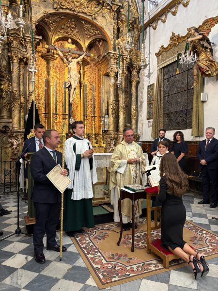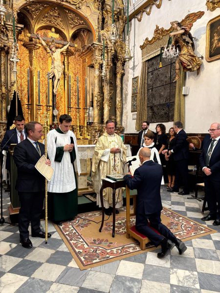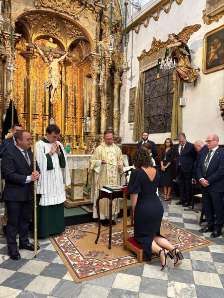 Tras la homilía del Rvdo. Sr. NHD. Rubén Jesús Virués Gómez, se llevó a cabo la bendición de medallas y el escrutinio de la nueva junta, finalizando el acto de toma de posesión con la jura de los siguientes oficios: