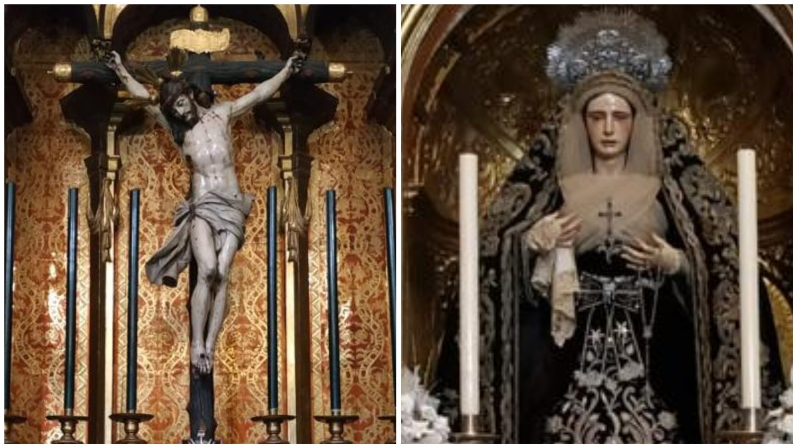 Igualmente, Nuestra Señora de la Soledad acentúa su luto, vistiendo su terno de juego y manto decimonónicos de negro y plata.