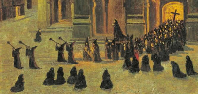 “Que en sus orígenes la cofradía era de sangre, parecer indiscutible como ya hemos analizado, Agustín de Orozco en 1594 la cita como que era una de las que sacaban pendón en la Iglesia Mayor y que era de disciplina, continuaría esta Hermandad con estas características hasta bien entrado el siglo XVIII.