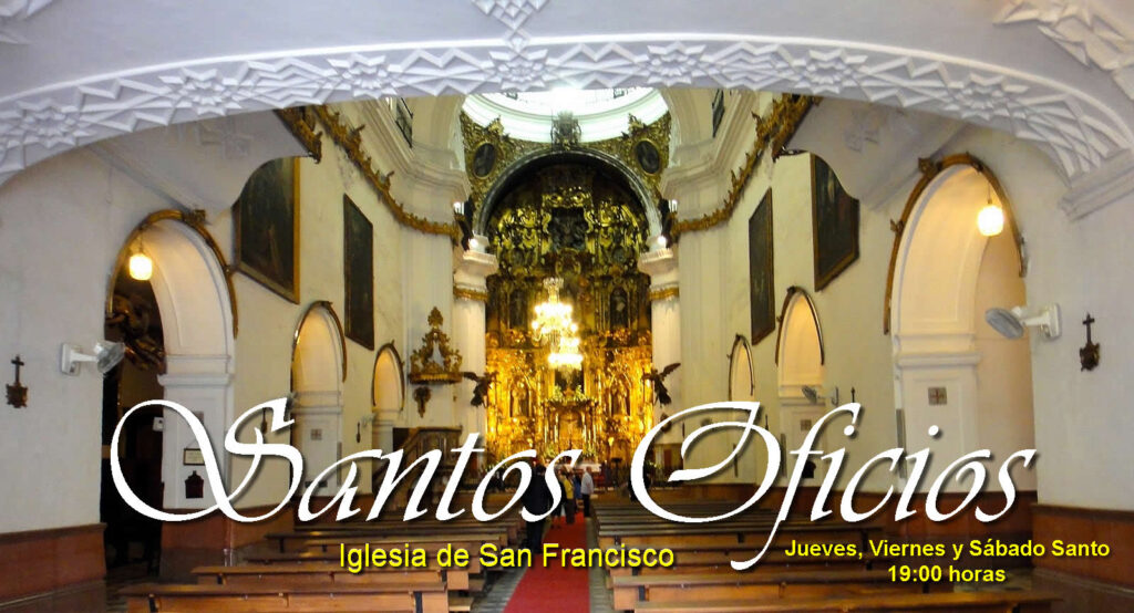 Recordarte que los Santos Oficios se celebrarán en la Iglesia de San Francisco a las 19:00 horas de hoy Jueves Santo, el Viernes y Sábado Santo.