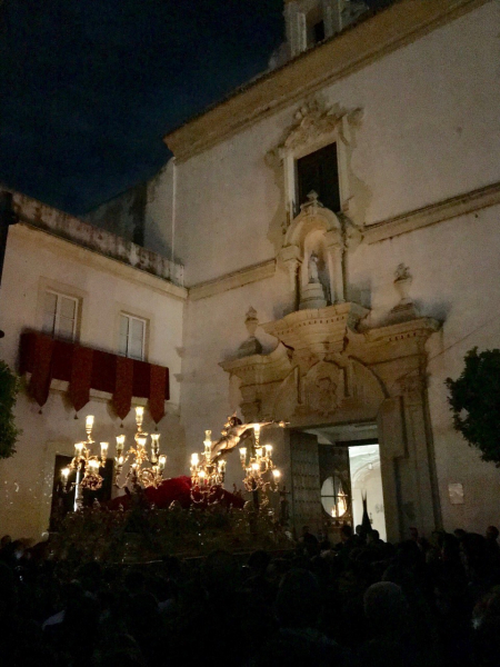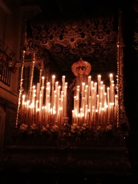 A las 20’25 horas se levantaba el Paso de Palio de Nuestra Señora de la Soledad que, a los sones de «Soledad» del Maestro Escobar interpretada por la Banda de Música de la Academia Municipal de Chiclana «Maestro Enrique Montero», volvió a sonar en su salida como lleva haciendo los últimos 38 años ininterrumpidamente.