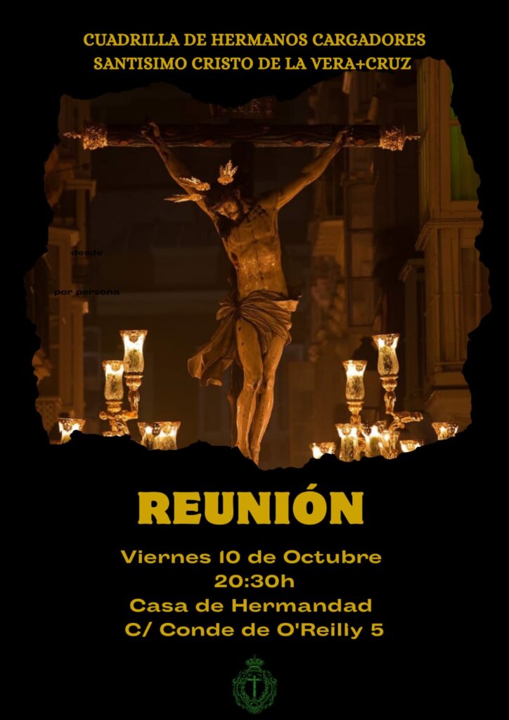7 de octubre de 2025Cuadrilla de Cargadoresveracruzcadiz@gmail.com El próximo viernes, 10 de octubre, en la Casa de Hermandad a las 20:30H, reunión de la cuadrilla de hermanos cargadores del Santísimo Cristo de la Vera+Cruz. Los interesados en pertenecer a la cuadrilla pueden acudir a la citación. Compartir